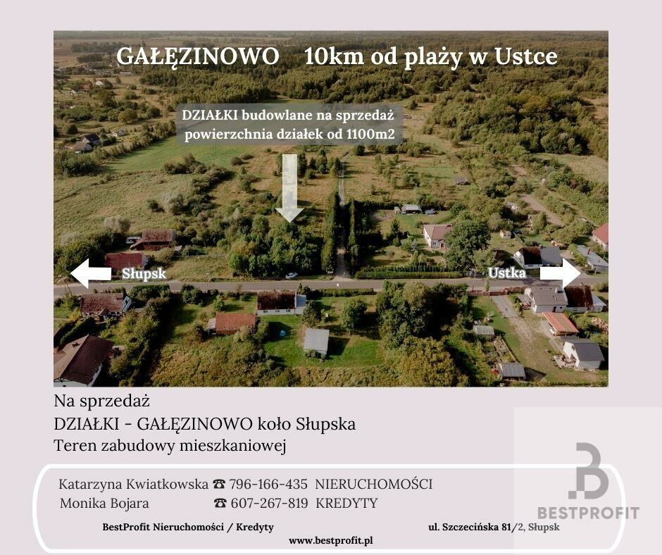 Na sprzedaż DZIAŁKA BUDOWLANA w Gałęzinowie pomiędzy Słupskiem i UstkaDziałka płaska, bez ogrodzenia o powierzchni 1100m2.